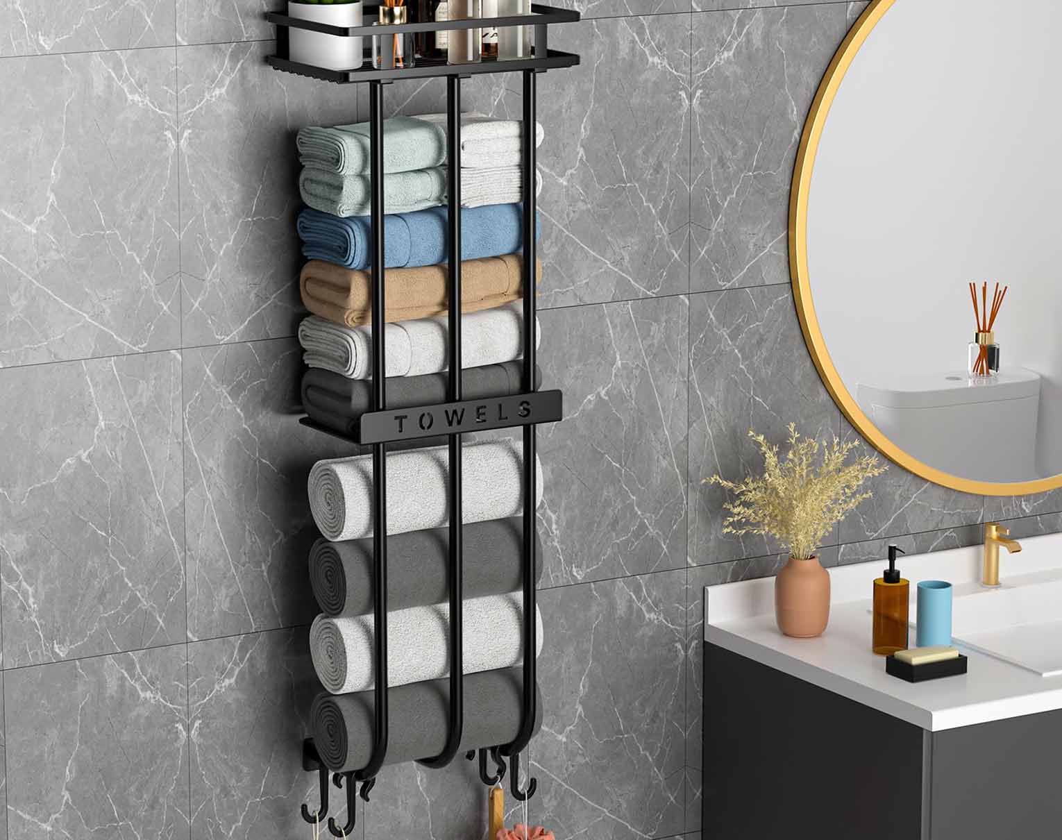 In modernen Haushalten ist das Aufbewahrungsproblem im Badezimmer oft eine Herausforderung. Mit der Verbesserung der Lebensqualität legen immer mehr Menschen Wert auf die Funktionalität und Ästhetik ihres Badezimmers. Besonders in begrenztem Raum, wie man Handtücher und andere Badezimmerutensilien effizient aufbewahren kann, um den täglichen Bedürfnissen gerecht zu werden und gleichzeitig eine komfortable und ordentliche Atmosphäre zu schaffen. In solchen Fällen ist ein clever gestaltetes und funktionales Badezimmerzubehör unerlässlich. Heute möchten wir Ihnen einen wahren Alleskönner für die Badezimmeraufbewahrung vorstellen – den VOTZAAQ Handtuchhalter Bad, ein 3-stöckiges Handtuchregal mit Metallablage und 4 Haken. Dieses Produkt hilft nicht nur dabei, Ihre Badezimmeraufbewahrung zu optimieren, sondern verleiht Ihrem Badezimmer auch einen modernen Touch.