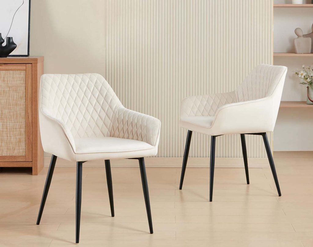 3. JYMTOM Esszimmerstühle 2er Set – Küchenstühle mit Armlehne, Sitzfläche aus Samt, Metallgestell – Modernes Design für Wohnzimmer, Schlafzimmer und Küche